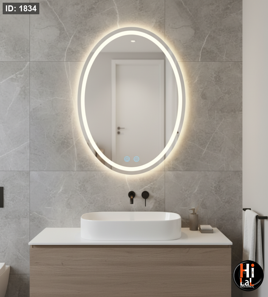 مرآة بيضاوي قطر 80/60 سم LED مع مزيل الضباب والبخار ومفتاح لمس 3CCT C1301/8060N