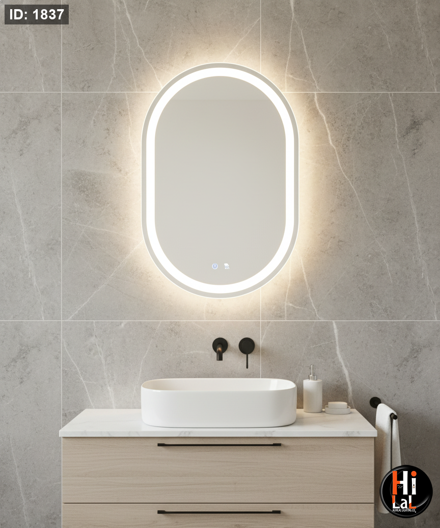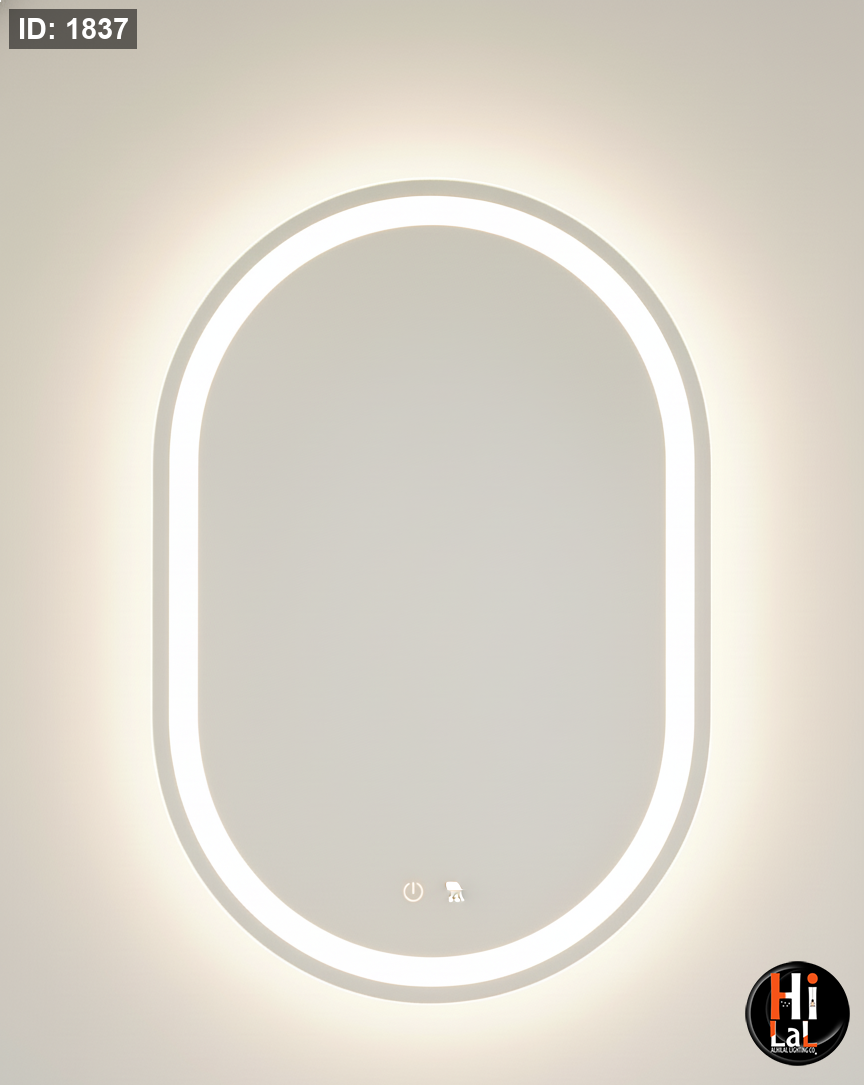 مرآة بيضاوي قطر 80/60 سم LED اطار اسود مع مزيل الضباب والبخار ومفتاح لمس 3CCT B1201